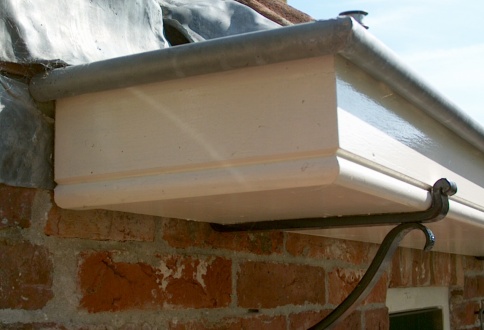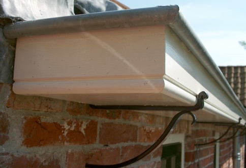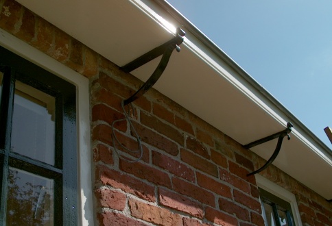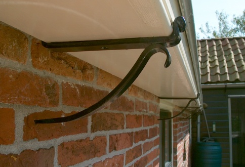 Deze goot is aangebracht aan een historische woning in Enumatil. De gootbeugels zijn handmatig op maat gesmeed.