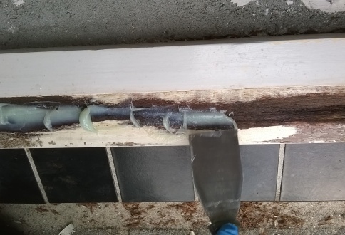 Regelmatig voeren wij kozijnreparaties uit. In dit voorbeeld wordt een onderdorpel van een kozijn gerepareerd. De reparatie is tezamen uitgevoerd met vervanging van de isolatieruit en een ventilatierooster.